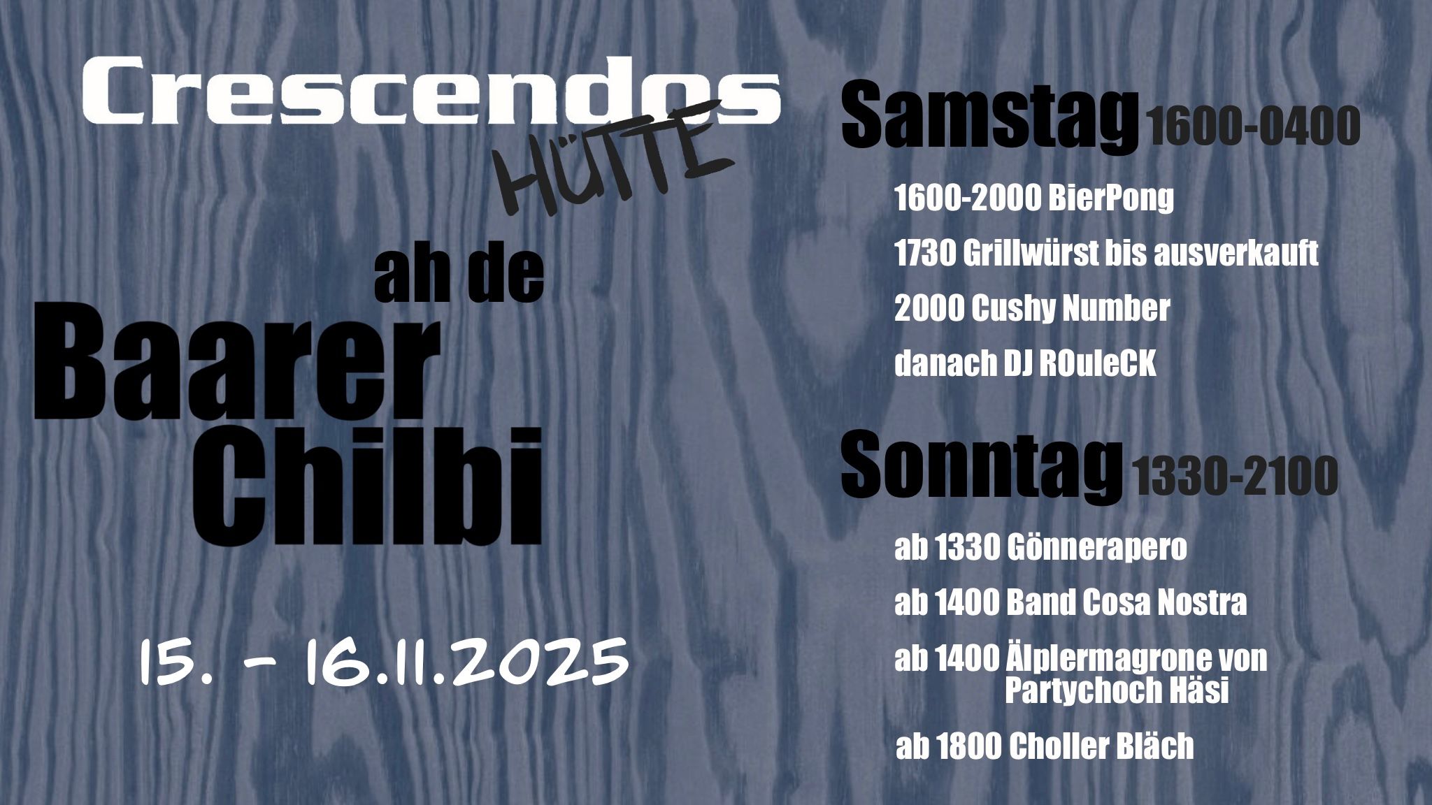 Wie jedes Jahr sind wir auch 2025 für Euch an der Baarer Chilbi präsent in der Crescendoshütte bei der Kreuzung Rathausstrasse – Marktgasse.
